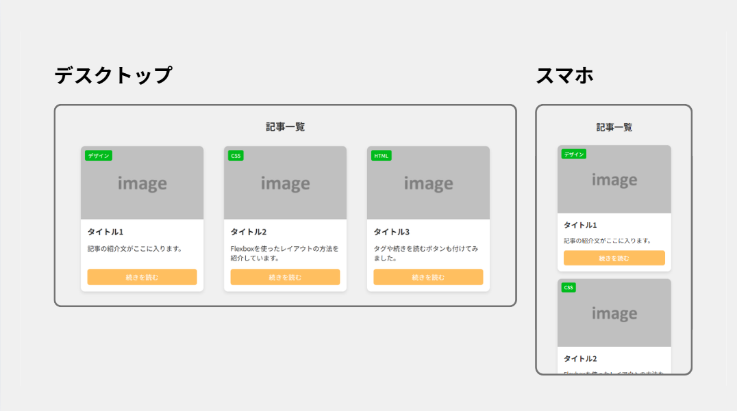 <p>Flexboxを使ったレイアウトの方法を紹介しています。</p>