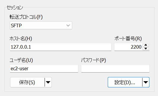 こうすることでWinSCPがあたかも「SSH接続しているかのように」EC2に接続できます。
