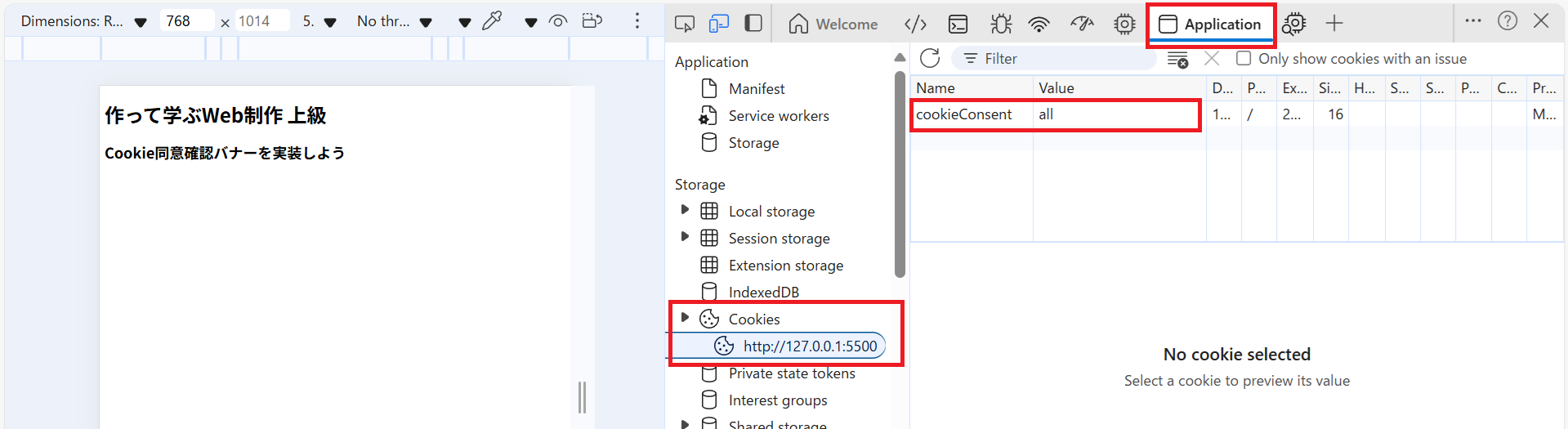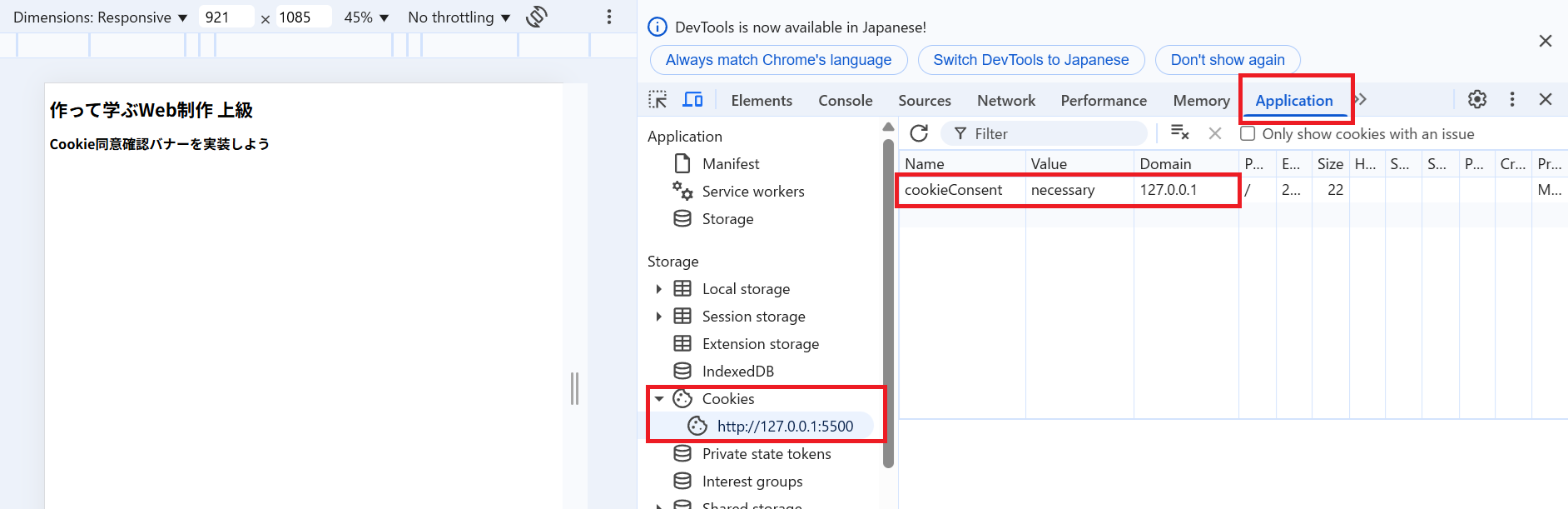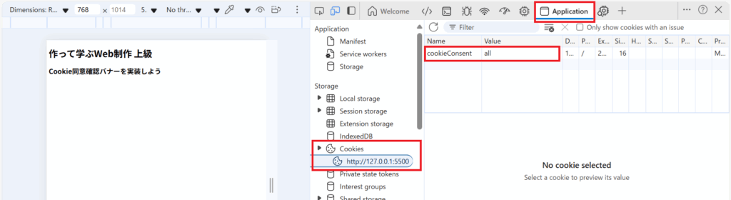 これで、ユーザーの選択に応じてCookie情報を記録することができました。