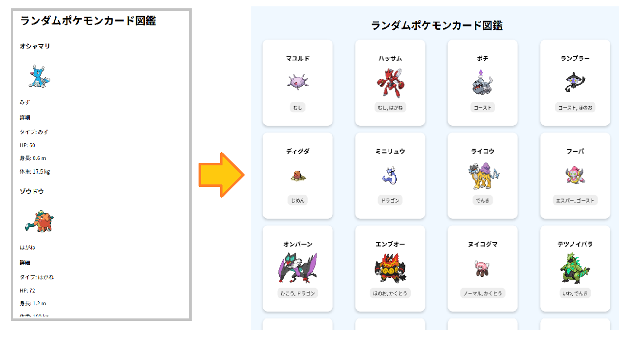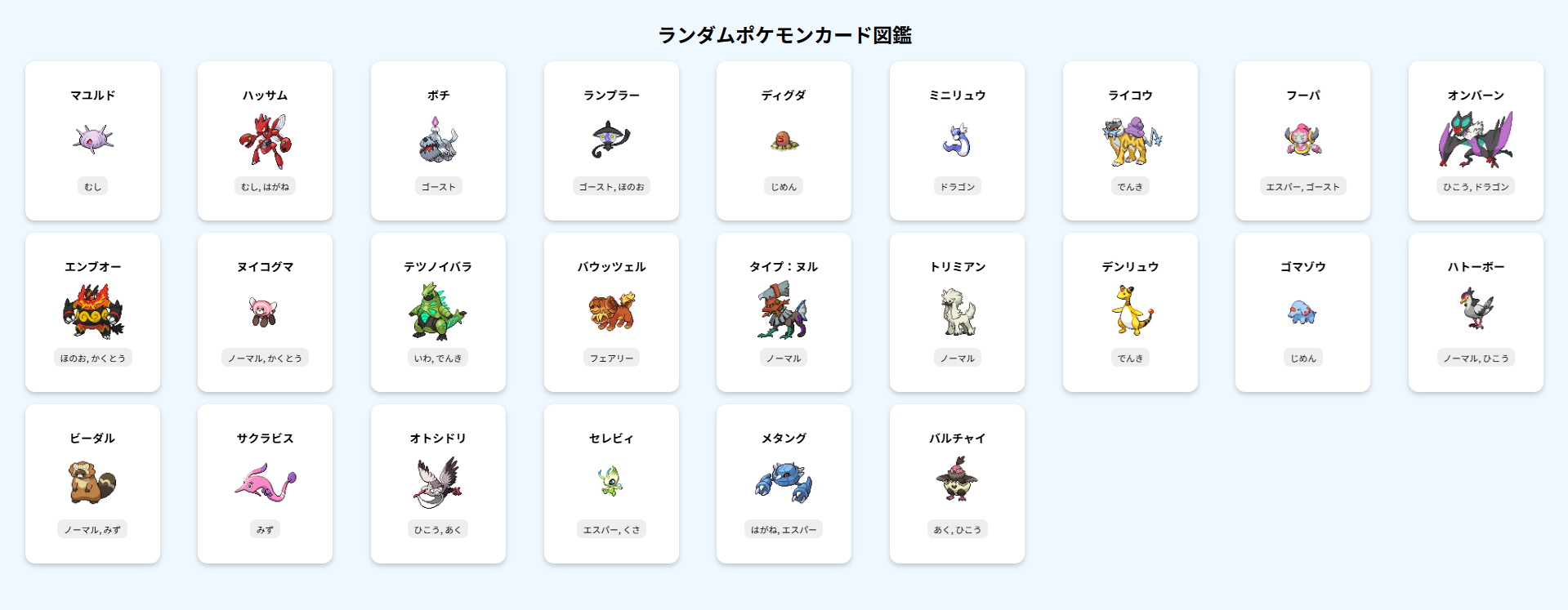 CSSも追加したので、これでポケモン図鑑アプリの完成です!!